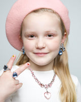 • Jewelry set includes stretchy necklace, adjustable ring and pair of clip-on earrings