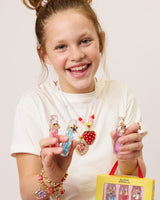 - Includes 3 crystal-cut lip glosses with matching stretchy rings