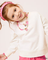 - Two oversized charms: one heart-shaped gem, one Minnie Mouse shaped gem
