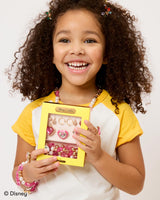 - Includes pink and pearl beads, heart-shaped Minnie Mouse charms, and velvet cords