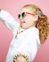 - Set includes three hair pins with colorlful, sparkly gem accents