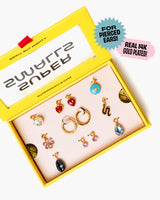 These SUPER cool, REAL 14K gold-plated hoops are for pierced ears! The Totally Charming Earring Set includes two hoops and ten interchangeable gem charms (a real seashell, a sparkly snake, a pink flower, a real turquoise charm, & more!). Stack, layer, and play to show off your personal style. Plus, they’re perfect for sharing with Mom, sister, or best friend!