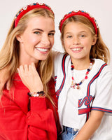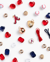 • Features a mix of red, navy, and white beads, plus team logo charms